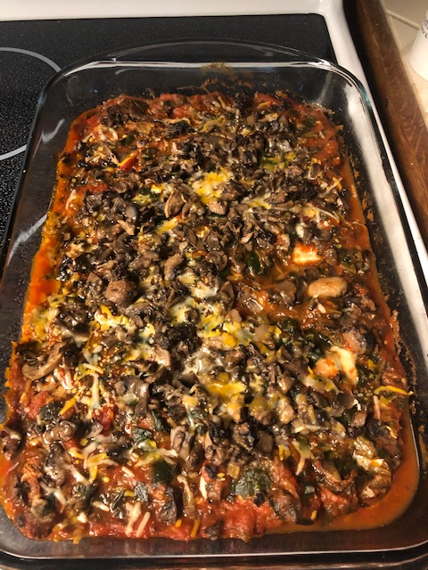 - I meant to mix the cooked mushrooms that were diced up already into the mix, but forgot, so those were added on top, along with some cheese.