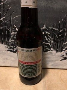 This beer is brewed by Spoetzl Brewery in Shiner, TX. At 5.4% ABV, this is a different type of beer… one we would not have put in our craft beer advent box. The smell is of a fruity hard cider… or like Josh called it, something that smelled like a fruit punch koolaid packet. This is one that we would definitely not buy. If you are a fan of hard ciders, or one that likes more of the fruity drinks, this is worth a try for you. We both drank this one as quick as we could so we could move on to a better beer for a Friday night. The positive that came out of this, is that we know this is a beer we don’t care for. 🙂