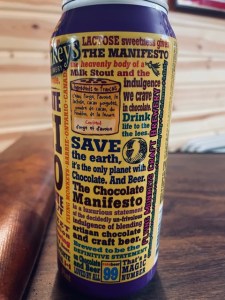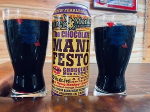 On Sunday, December 5th, our beer is a triple chocolate milk stout called The Chocolate Manifesto. This is brewed by Flying Monkeys Craft Brewery out of Ontario, Canada… where we picked up this beer, we can’t quite recall, but it is a new favorite and would definitely pick up more if we run across this again.