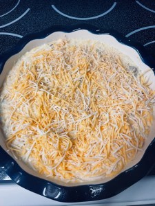 4. Slowly pour over the meat mixture – no need to stir in with the meat! Add cheese on top.