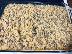 - Carefully stir in the rice and then add to the 13×9 baking dish.