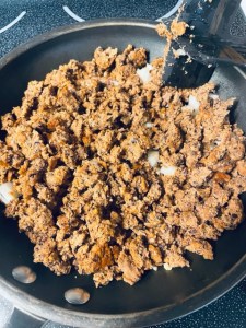 - 1 lb burger, or about 1 lb of black bean ‘meat’ and be sure to cook it first – see recipe here