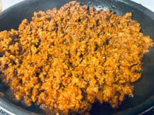 I still eat meat – however, if I find an opportunity to use a black bean ‘meat’ mix with a dinner dish, I’m going to do it. If you use this with black bean ‘meat’ like I did, be sure to cook the onions and minced garlic separately, add the sauce to that and the meat mixture AFTER. Otherwise, you will have a refried bean version of sloppy joes.