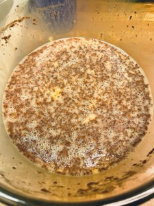 - Pour the egg mixture over the bread – make sure each piece has been soaked. I used a spatula to mix it all around. Let soak for 30 minutes.
