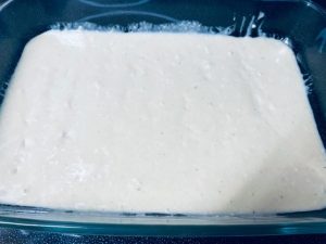 - Spread into the greased 9×13 baking dish.