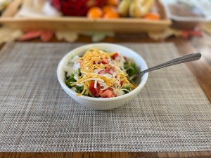 Dinner: Leftover lasagna with Cesar dressing drizzled on top.