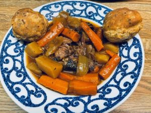 Dinner: Roast with carrots, onions, onions that my better half made in the crockpot. Two garlic biscuits.