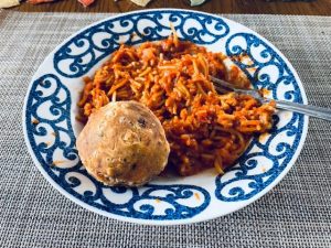 Lunch: Skillet Spaghetti with one garlic biscuit from last night.