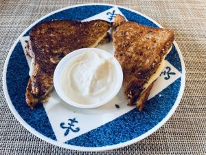 Breakfast: Grilled cheese with a mayo/horseradish sauce.