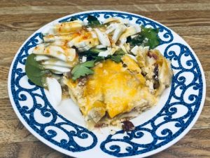 Dinner: Leftover Chicken Bacon Ranch Lasagna with a salad, onions, one whole hard egg, Italian dressing. Recipe is here: https://foodanddrinklover.blog/2022/12/06/chicken-bacon-ranch-lasagna/