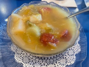 Lunch: Potato Soup with Andouille sausage and leeks – this is the first time ever I’ve had soup when going out to eat at a restaurant! The bartender was kind enough to let me try it when I told her I’ve never had leeks before. The taste was absolutely amazing… I did add a package of oyster crackers to soak up some of the juice! If you are ever in the Charlevoix, Michigan area, Villager’s Pub is definitely a great place to stop to grab some food!