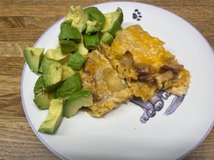 Lunch: Potato Soup with Andouille sausage and leeks, leftover chicken bacon ranch lasagna and a small avocado.