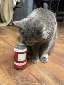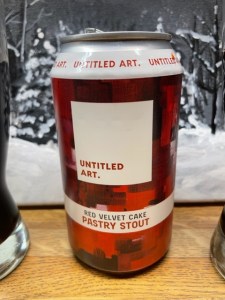 It is Day 22 of the Craft Beer Advent box for December 2022. Our twenty-second beer is a Red Velvet Cake Pastry Stout, which is brewed by Untitled Art out of Waunakee, Wisconsin. I am not a fan of red velvet cake at all – however, as soon as I opened the can, I smelled it and wow.. smelled amazing!! As I was getting the beer ready, Milo was waiting patiently as well.