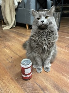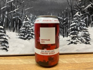 It is Day 22 of the Craft Beer Advent box for December 2022. Our twenty-second beer is a Red Velvet Cake Pastry Stout, which is brewed by Untitled Art out of Waunakee, Wisconsin. I am not a fan of red velvet cake at all – however, as soon as I opened the can, I smelled it and wow.. smelled amazing!! As I was getting the beer ready, Milo was waiting patiently as well.