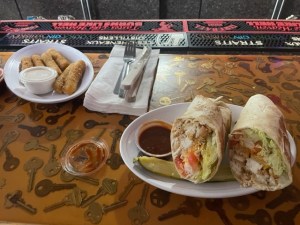 Lunch: Late lunch – Chipotle Crispy Chicken Wrap with cheese sticks and ranch dressing. Dill pickle spear as well.