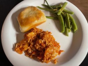 Dinner: Jambalaya, green beans, roll.
