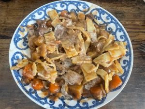 Lunch: Amish noodles with leftover venison stew we had last night.
