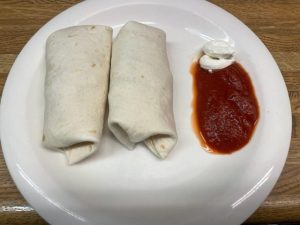 Lunch: Two small tortillas with cheese melted inside, dipped in marinara sauce.