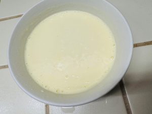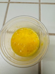 - Crack one of the eggs in a small bowl, whisk and set aside.