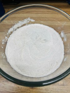 - In a larger mixing bowl, add the dry ingredients and stir together – flour, sugar (optional), baking powder, baking soda, salt & garlic salt.