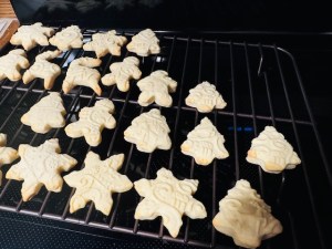 - Use cookie cutters and place the cookies on a baking sheet, lined with parchment paper or sprayed with olive oil/pan spray.