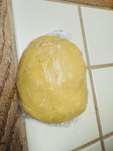 - Use a spatula to get the dough out of the mixing bowl, then roll in a ball. Wrap in plastic wrap and put in the refrigerator for at least an hour, or until the dough is firm.