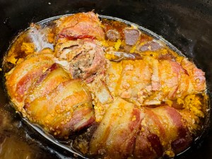 - With using bacon, I did not sear the tenderloin first. If you choose to not use the bacon, searing may be something for you to consider.